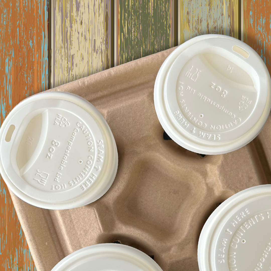 Las tapas compostables 80mm son el complemento perfecto para los vasos de papel compostables de 8oz de cualquier tipo.